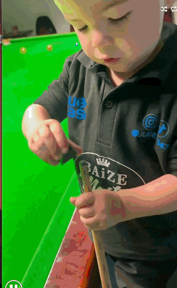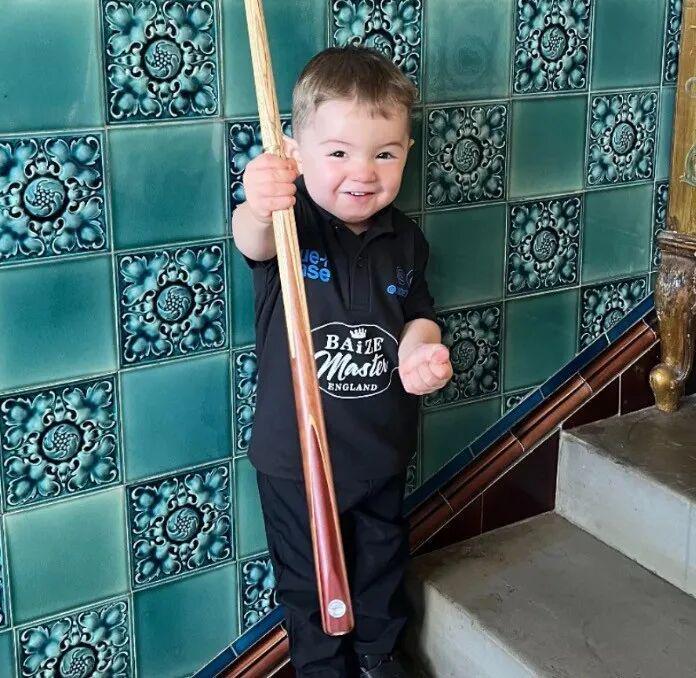两岁半的时候,他完成了第一次击球,从此开始经常练习打球,虽然暂时还不能把斯诺克玩得很溜,但花式台球已经玩出了一些心得。